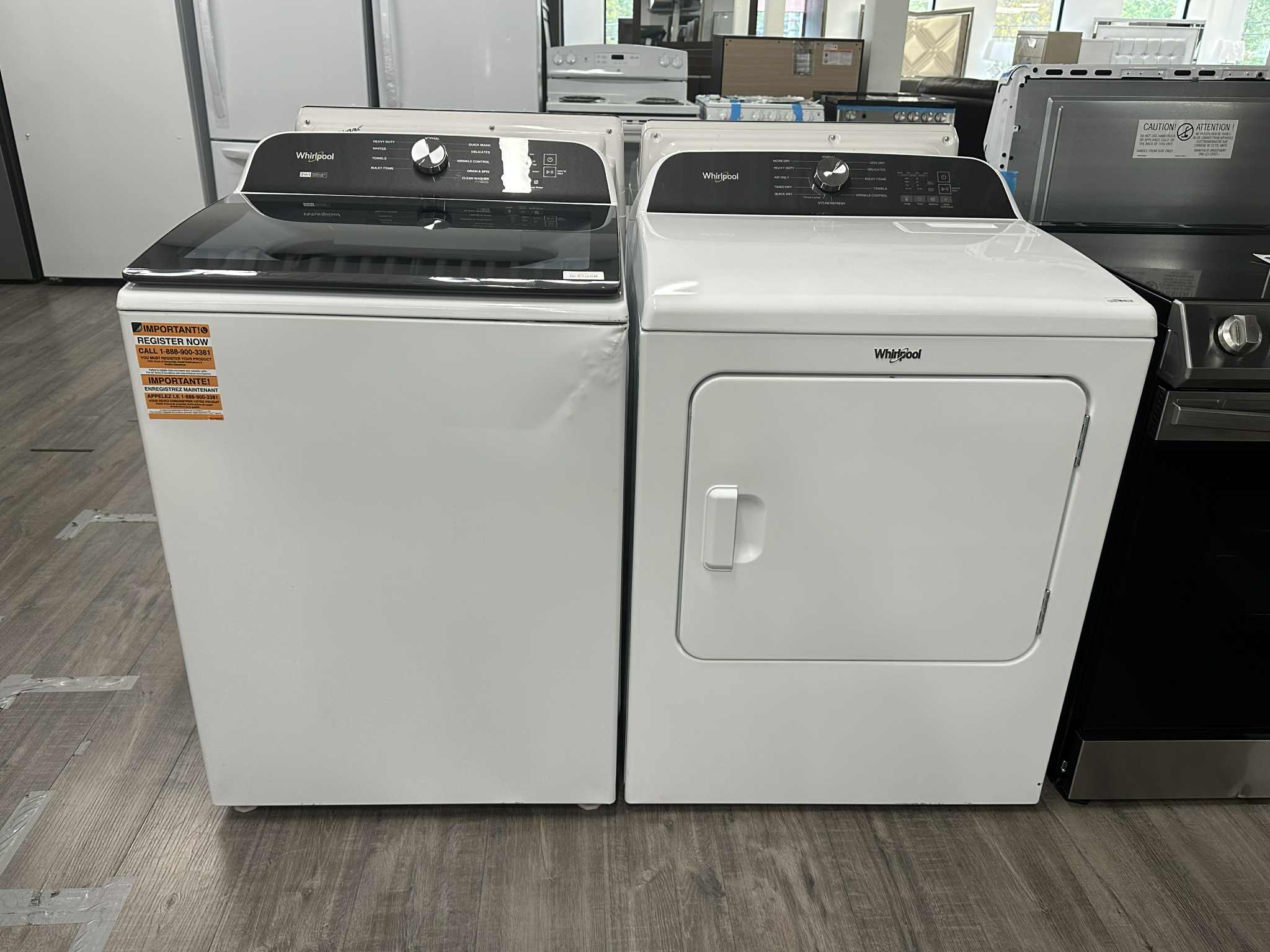 Whirlpool 27'' 5.2 pi cu - Laveuse - agitateur amovible - WTW6157PW - Secheuse Electrique 29'' 7.0 pi.cu - YWED6150PB - Boîte Ouverte