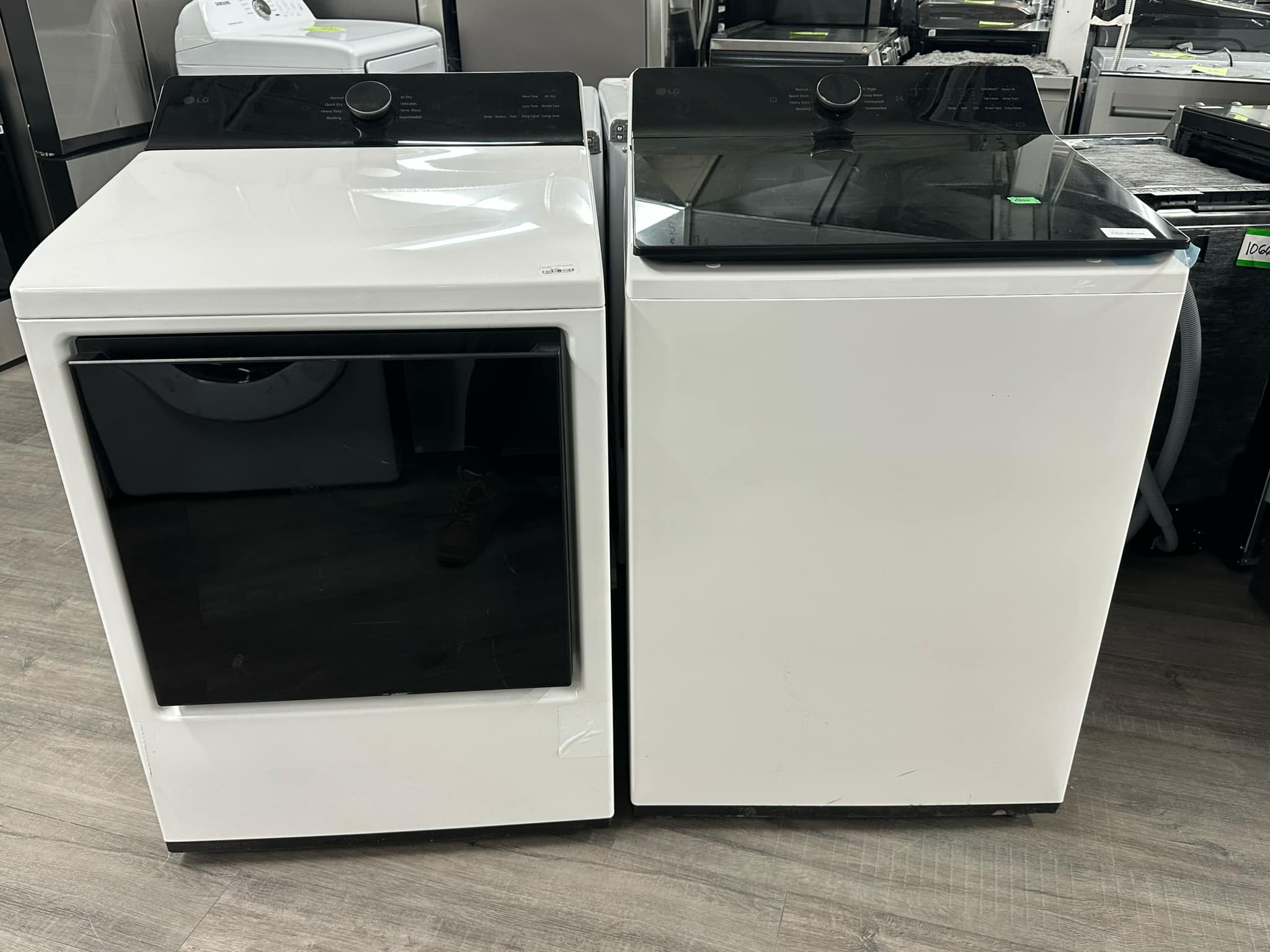 LG 27'' 5.3 pi. cu. Laveuse Chargement Verticale WT8405CW - LG 27" 7.4 pi. cu. Sécheuse - DLE8200W - blanc - boîtes ouvertes