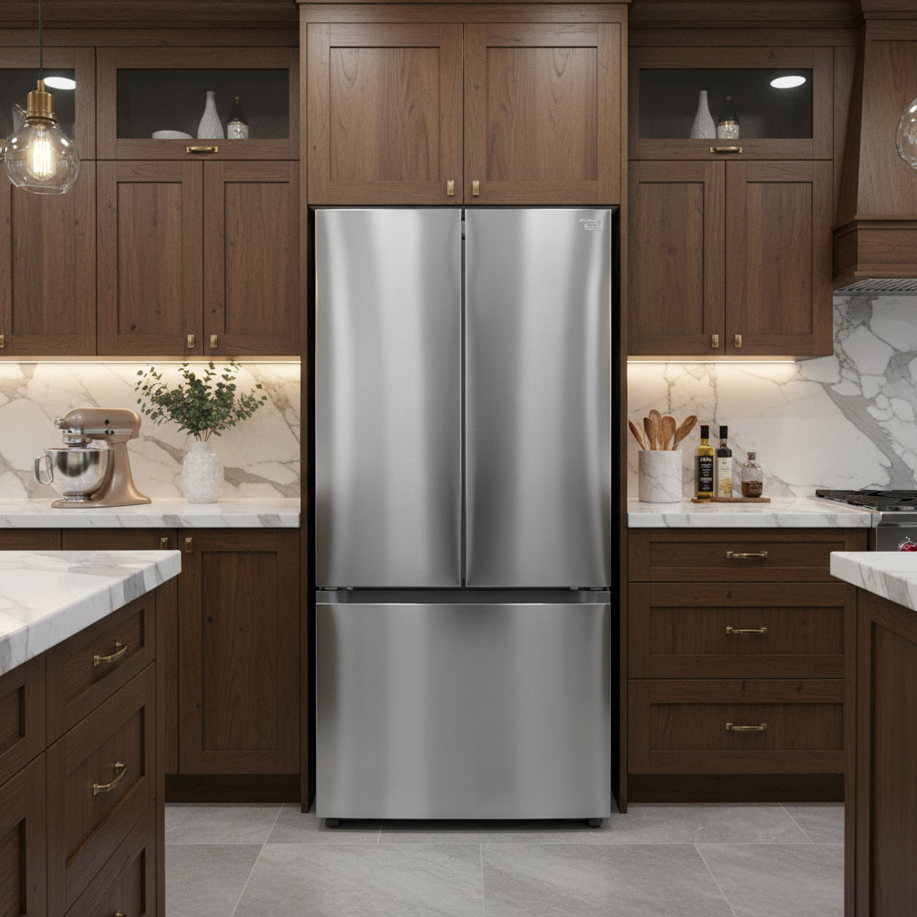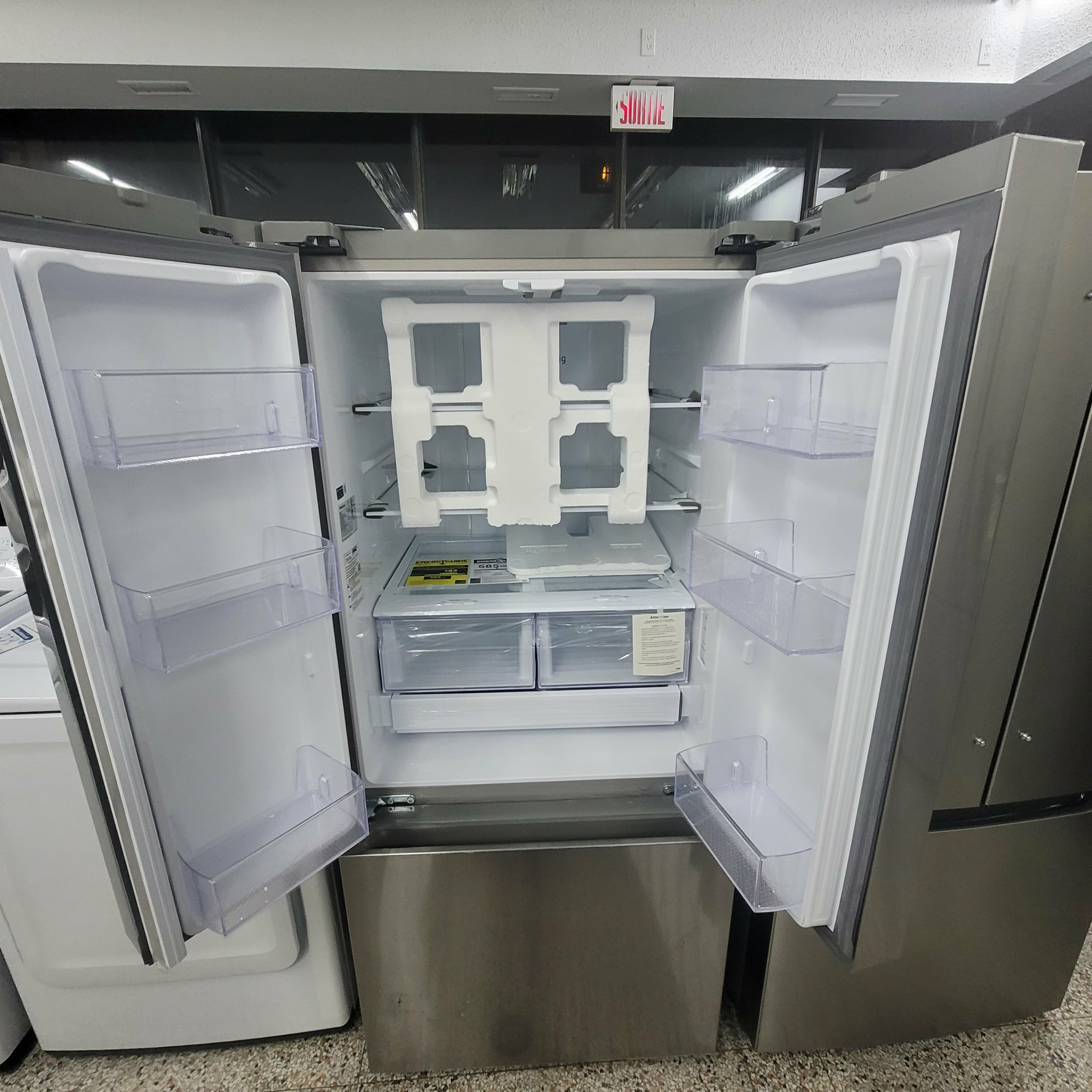Samsung 30 " po 22,1 pi.cu. réfrigérateur à 3 battants - Machine à glace- Energy star®-Résistant aux Empreintes Digitales- inox - RF22A4111SR/AA - boîte ouverte