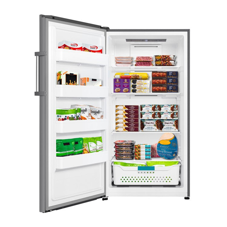 Congélateur vertical convertible Hisense de 17 pi³, prêt pour le garage, couleur argent, avec porte réversible